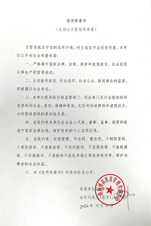 公司总经理蒋伟签署信用承诺书